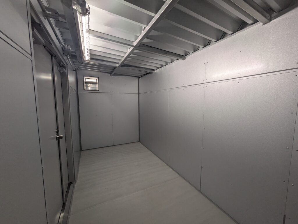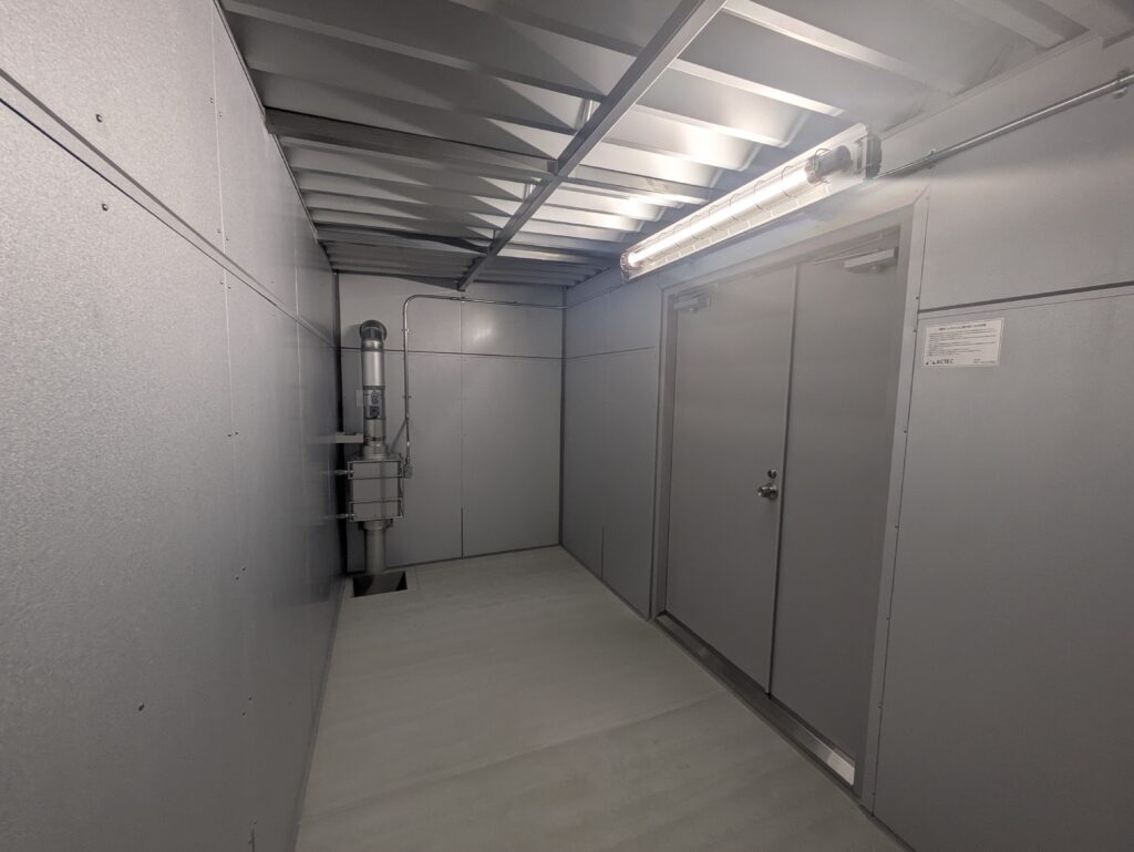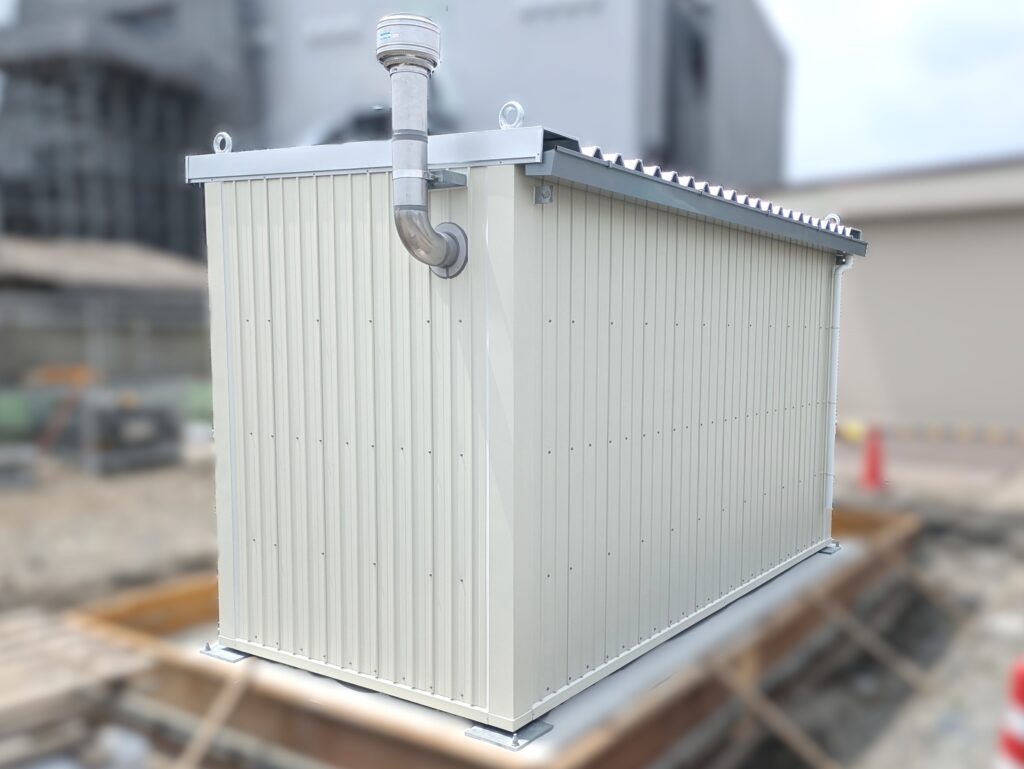 オプションの鋼製雨樋を採用したFSA-3型です。お客様ご用意の基礎上へ据え付けを行いました。