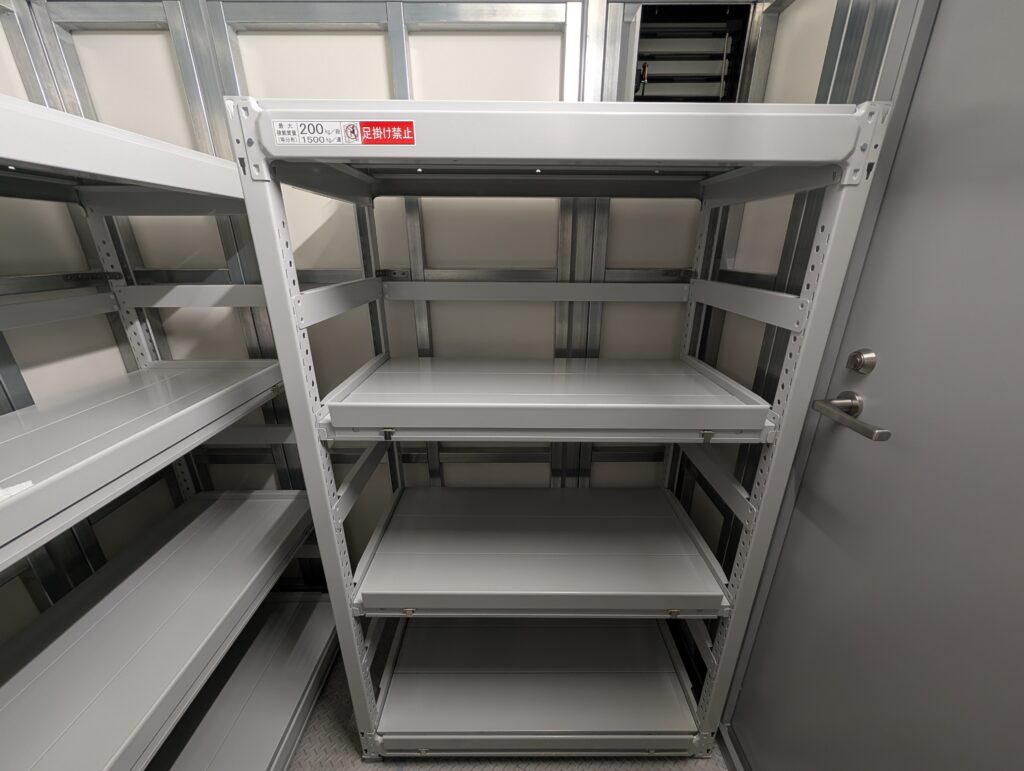 外寸を変更し、ユニット式を採用した特注仕様のFPI-D特寸型です。オプションの棚を2台配置し、ラフタークレーンを用いて5階開口部から引き込みました。