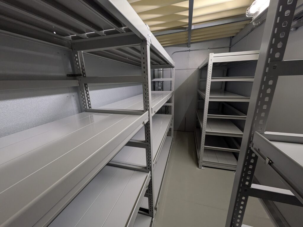 FSA-3型です。オプション鋼製棚を3台配置し、お客様ご用意のベタ基礎へ設置しました。